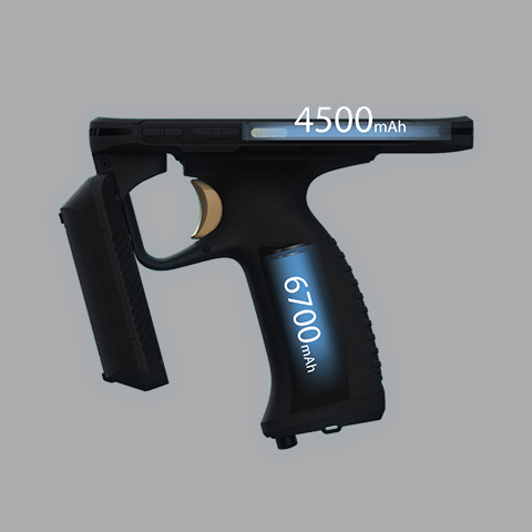 機身擁有4500mAh內(nèi)置電池,手柄處擁有6700mAh可拆卸電池,兩種供電方式支持,合計11200mAh超大電量,可滿足2個班次的使用,為大批量的出入庫或盤點工作提供續(xù)航支持。