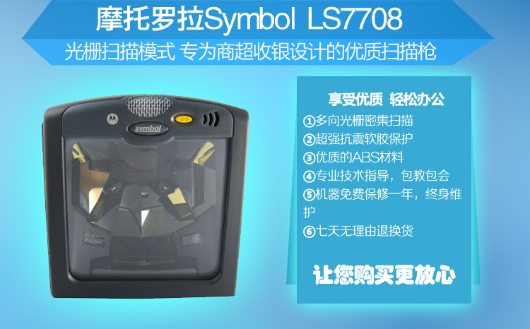 | 特性和優(yōu)點(diǎn)光柵掃描模式最大化首讀通過率,并甚至能讀取截?cái)嗟臈l形碼。GS1 DataBar 解碼支持新型的 GS1 DataBar 條形碼,讓您的投資具有長(zhǎng)遠(yuǎn)回報(bào)。多接口功能只需更換一條電纜,便能遷移至其它主機(jī)。通用電纜通過在整個(gè)摩托羅拉產(chǎn)品線上使用一條電纜節(jié)約成本。掃描拼接提高首讀通過率,并增加工作效率。收銀臺(tái)電子商品防竊系統(tǒng)(EAS)不需以單獨(dú)的步驟使安全標(biāo)簽失效,節(jié)約了時(shí)間。 遠(yuǎn)程掃描器管理(RSM)啟用基于網(wǎng)絡(luò)的遠(yuǎn)程設(shè)備管理,降低總擁有成本。PC 編程(123Scan)可輕松編程和設(shè)置 — 非常適合大型安裝。第二個(gè)掃描儀端口可連接第二個(gè)掃描儀以掃描沉重或超大的商品。自動(dòng)休眠模式降低功耗,延長(zhǎng)掃描儀壽命。先進(jìn)的數(shù)據(jù)采集快速結(jié)帳,改善顧客服務(wù)設(shè)計(jì)優(yōu)越,使用靈活性能卓越,價(jià)格適中降低總擁有成本 (TCO)提高合作伙伴和收銀臺(tái)工作效率 物理參數(shù)尺寸6.3 英寸(16 厘米)高 x 5.98 英寸(15.2 厘米)寬 x 3.73 英寸(9.5 厘米)厚,無(wú)支架重量?jī)H掃描器:2 磅 (907 克)電源主機(jī)電源或外部電源;視主機(jī)類型而定電壓和電流5.5 VDC 至 4.75 VDC 典型/最大電壓:390mA/500mA顏色淺黑色免提功能有有繩有 性能參數(shù)掃描景度0 - 10.0 英寸(0 - 25.4 厘米) 13 mil ( UPC/EAN)解碼能力1D, 請(qǐng)參閱規(guī)格表,獲取所支持的完整符號(hào)列表支持的接口IBM, 鍵盤仿真, RS-232, Synapse, USB掃描模式全向, 光柵技術(shù)激光掃描器最低分辨率最小反射差 25%5 mil 使用環(huán)境工作溫度32o 至 104oF(0o 至 40o C)儲(chǔ)存溫度-40o 至 158oF(-40o 至 70oC)抗光性可在室內(nèi)正常照明和室外自然光線(直射陽(yáng)光)條件下使用。 熒光、白熾燈光、汞蒸氣燈光和鈉蒸氣燈光:450 英尺燭光(4, 844 Lux);日光:8000 英尺燭光(86, 111 Lux) 法規(guī)規(guī)定電氣安全UL 60950-1, C22.2 No. 60950-1, EN 60950-1, IEC 60950-1激光安全EN 60825-1, IEC 60825-1, 21CFR1040.10EMI/RFIEN 55022, FCC 第 15 部分 B 級(jí), ICES 003 B 級(jí), EN 55024, EN 61000-3-2, EN 61000-3-3環(huán)境保護(hù)RoHS 指令 2002/95/EEC |