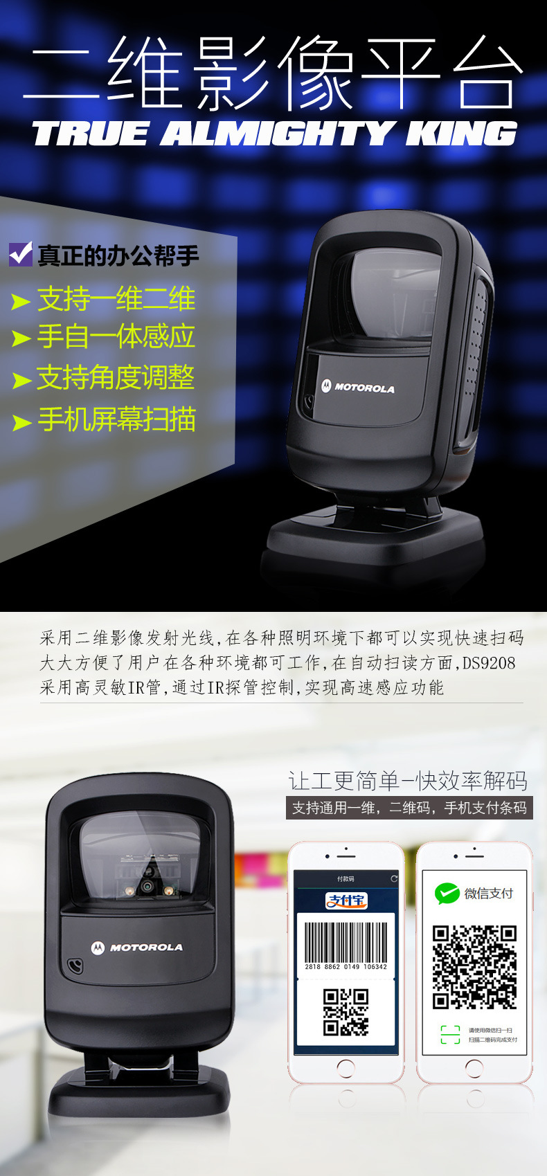 摩托羅拉訊寶DS9208二維掃描搶二維讀碼槍掃描平臺超市藥店掃碼槍