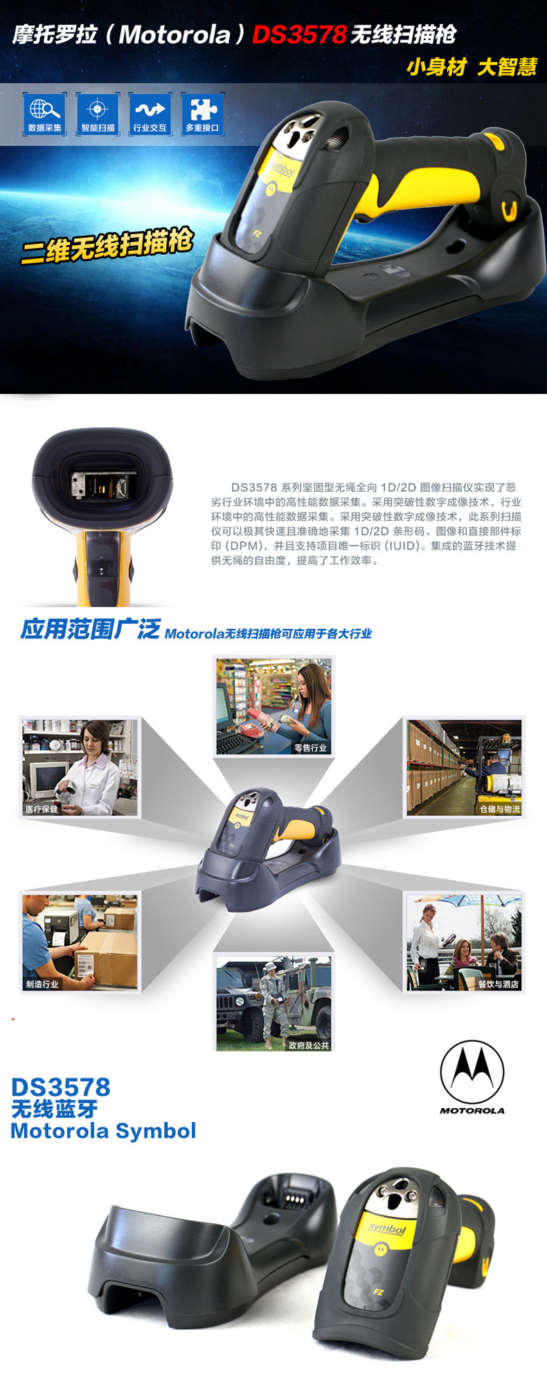 Motorola摩托羅拉Symbol訊寶DS3508DPM有線讀碼器二維掃描槍工業(yè)級(jí)